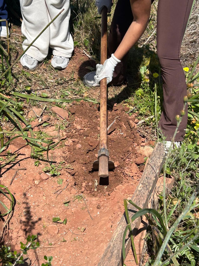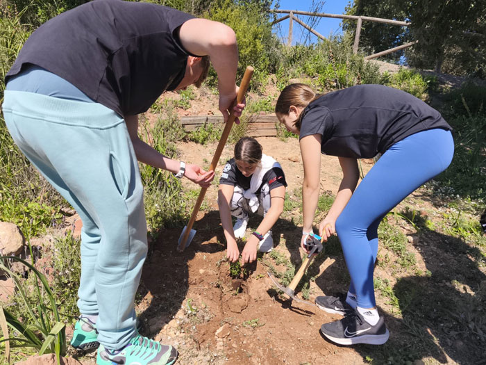 A lo largo de la actividad, los estudiantes han trabajado directamente sobre el terreno, preparando el suelo, excavando, plantando distintas especies y señalizando cada una de ellas con etiquetas identificativas 🪴. Esta intervención en un entorno natural cercano les ha permitido comprender de forma práctica los procesos de crecimiento de las plantas y el cuidado del medio ambiente 🌍.