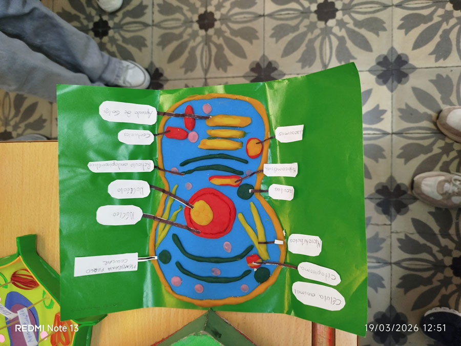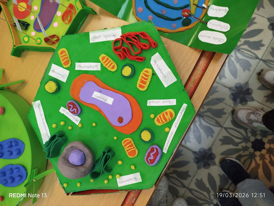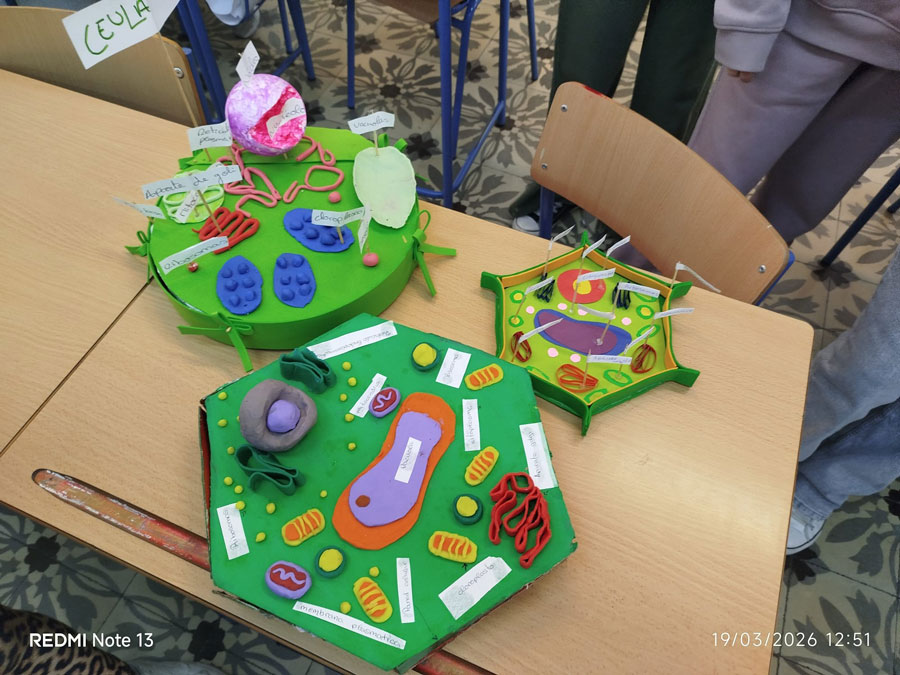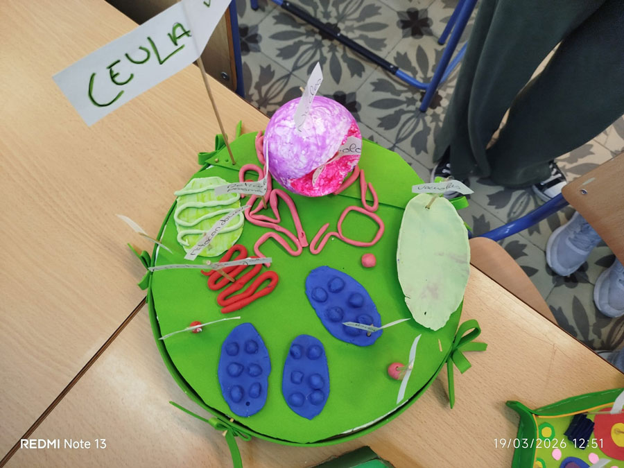 A lo largo del proyecto, los estudiantes han diseñado y construido sus propias células 3D, tanto animales como vegetales, utilizando materiales diversos y aportando un alto grado de creatividad 🎨. Cada maqueta ha sido cuidadosamente elaborada para representar las distintas partes celulares, incorporando etiquetas identificativas que permiten reconocer sus estructuras y funciones.