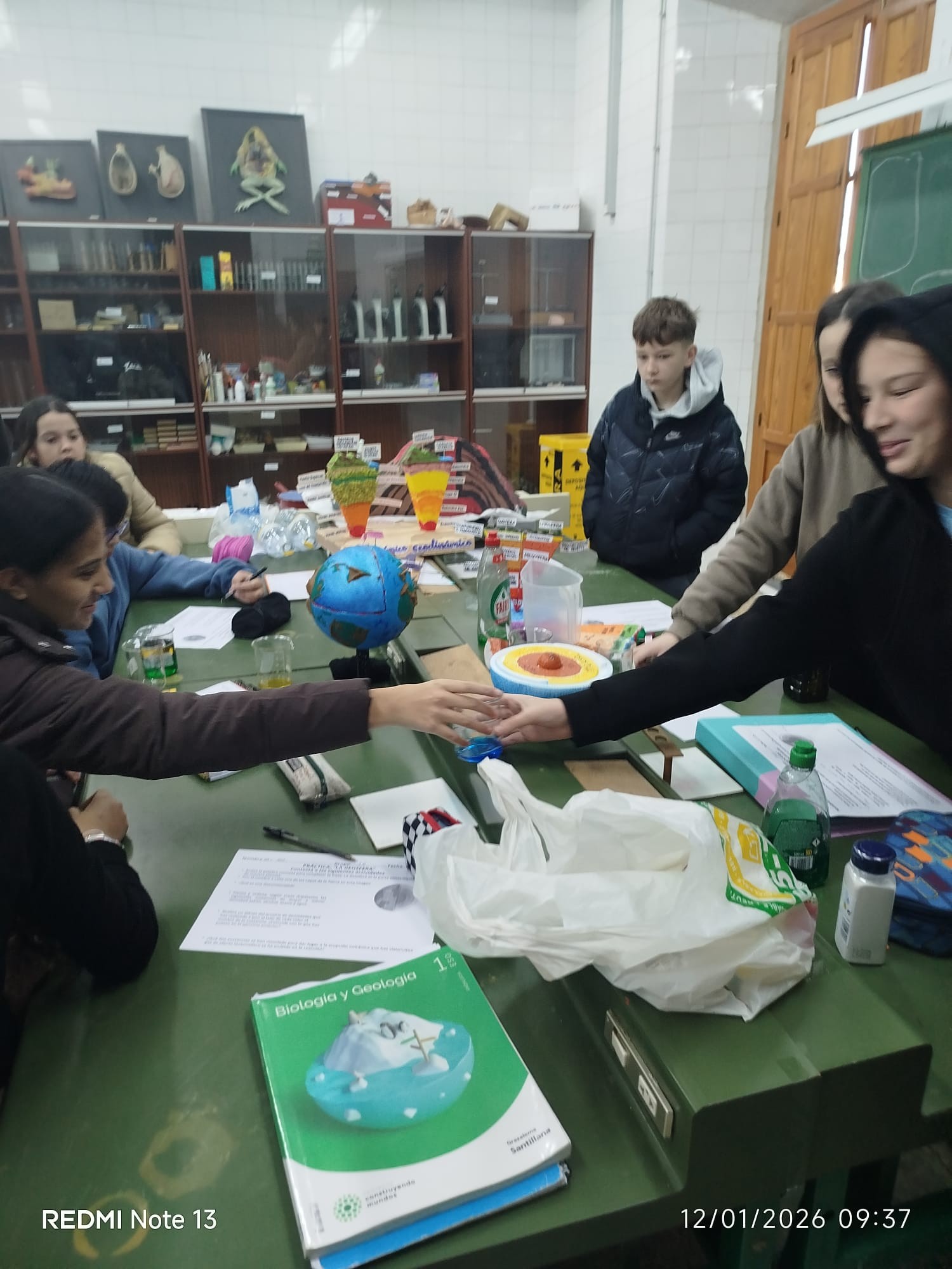 El alumnado de 1.º de Bachillerato de Ciencias ha protagonizado una enriquecedora actividad interetapa con los grupos de 1.º de ESO, centrada en el estudio de la Geosfera y organizada por el Departamento de Biología y Geología. Esta iniciativa ha permitido fomentar la colaboración entre diferentes niveles educativos, la comunicación científica y el aprendizaje activo basado en la experimentación.