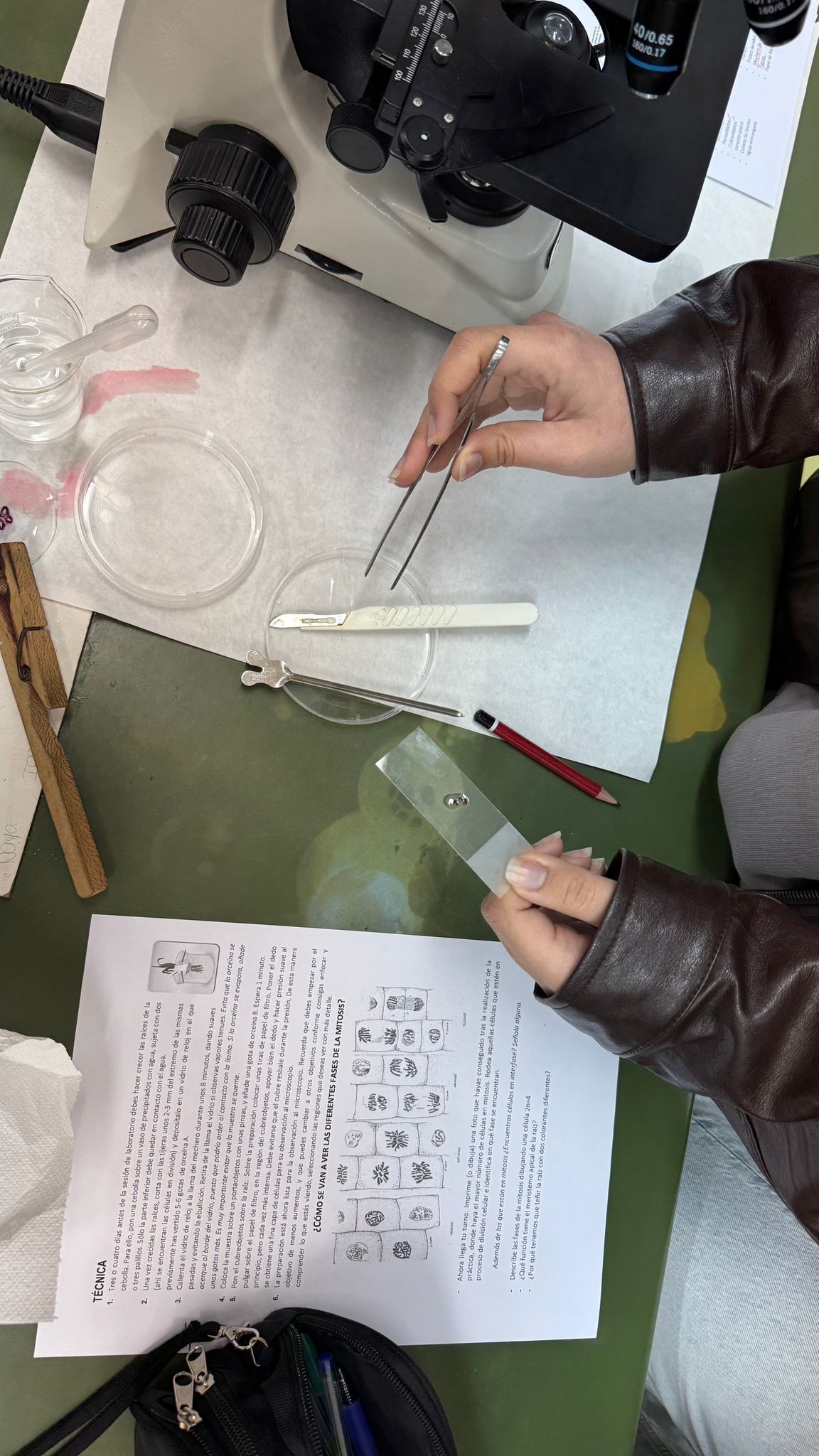 El alumnado de segundo de Bachillerato ha profundizado en uno de los procesos fundamentales de la vida: la división celular, mediante una práctica de laboratorio que les ha permitido observar directamente las fases de la mitosis y la meiosis en células vegetales y animales.