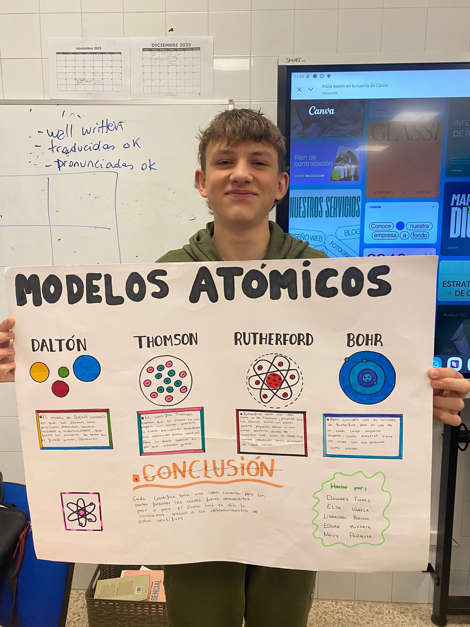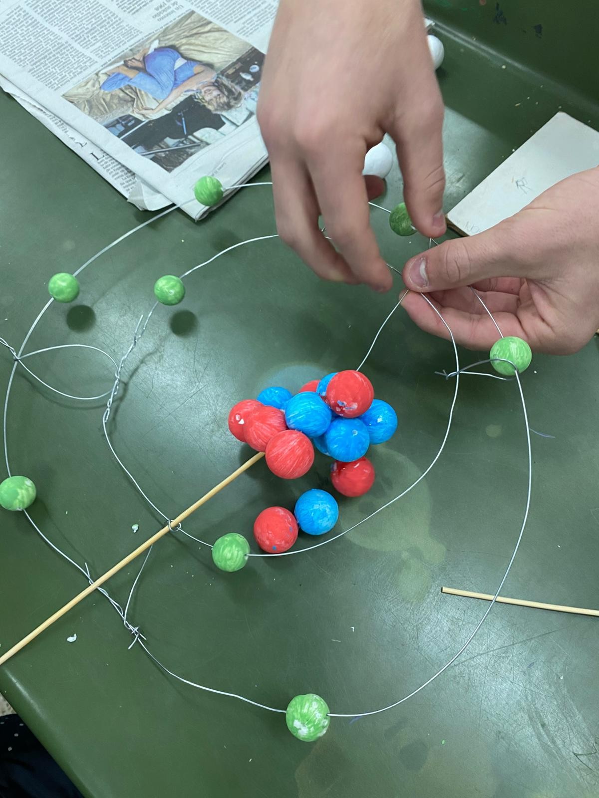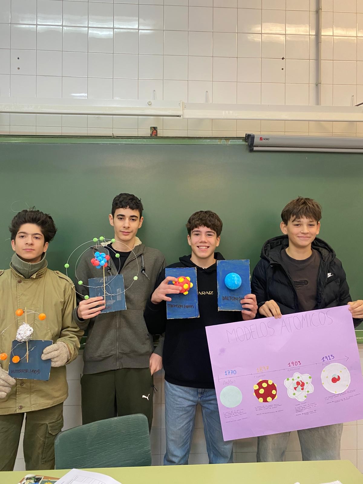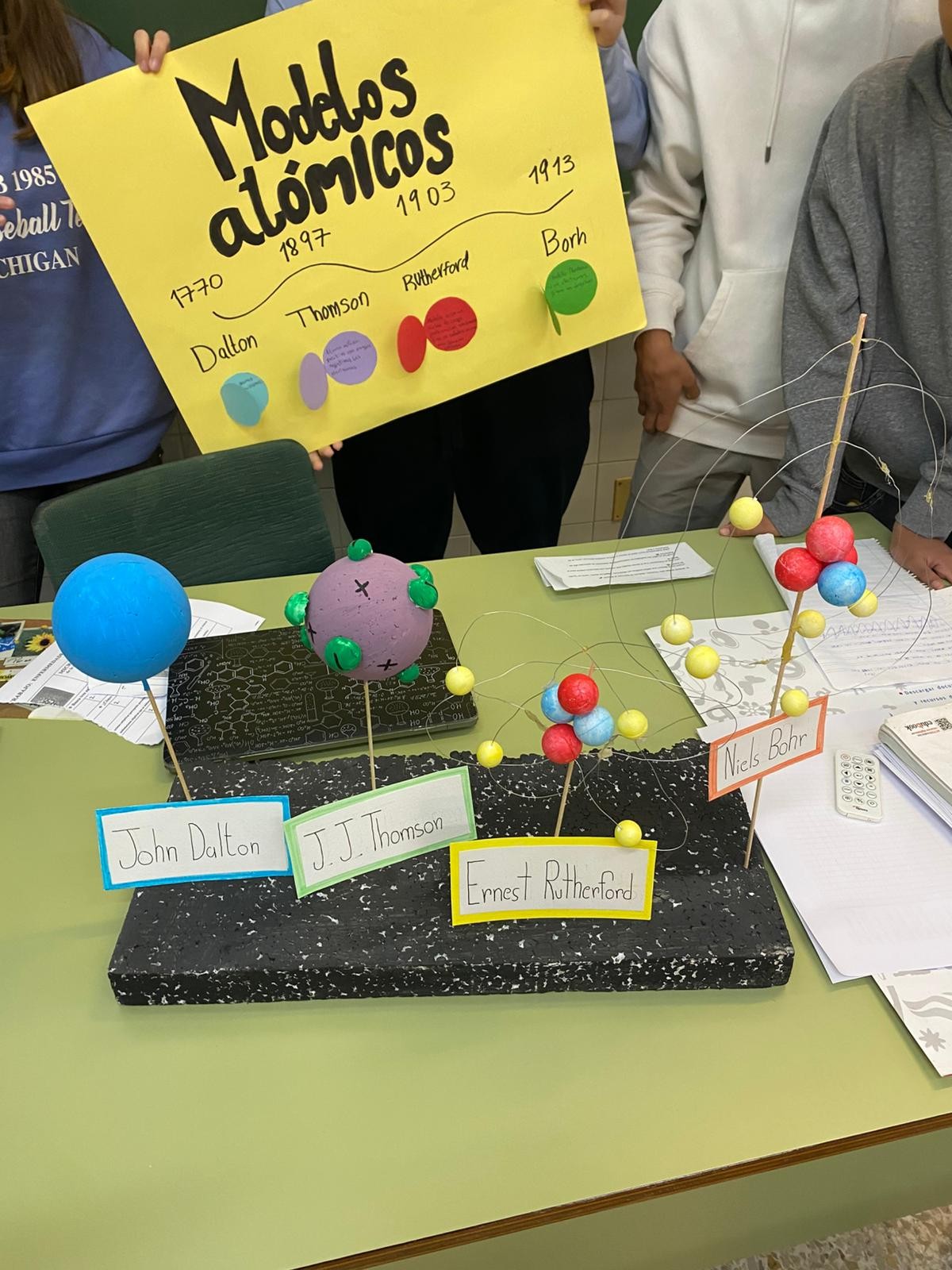 El alumnado de 3.º de Educación Secundaria Obligatoria ha desarrollado un proyecto interdisciplinar de Física y Química centrado en la construcción de maquetas de los diferentes modelos atómicos propuestos a lo largo de la historia de la ciencia. A través de esta actividad práctica, los estudiantes han podido visualizar la evolución del conocimiento científico y comprender cómo las teorías sobre la estructura de la materia han ido perfeccionándose con el tiempo.