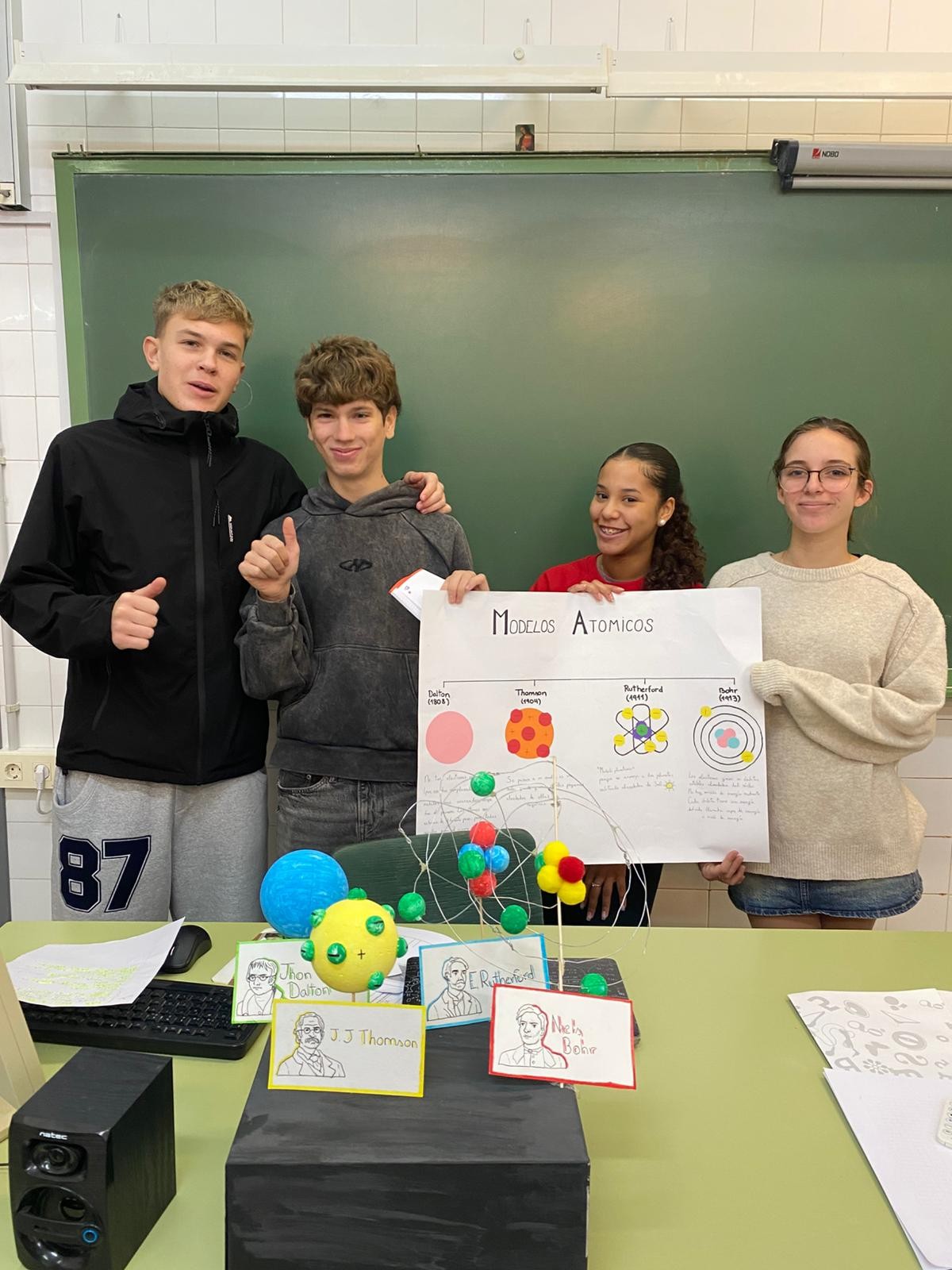 Durante el proyecto, los equipos de trabajo elaboraron maquetas representativas de los modelos de Dalton, Thomson, Rutherford, Bohr y el modelo cuántico actual, analizando los parámetros característicos de cada propuesta: número de partículas subatómicas, disposición, estabilidad y energía. La exposición final de los trabajos incluyó una presentación oral en la que el alumnado explicó el contexto histórico, las evidencias experimentales y las aportaciones de cada científico a la comprensión del átomo.